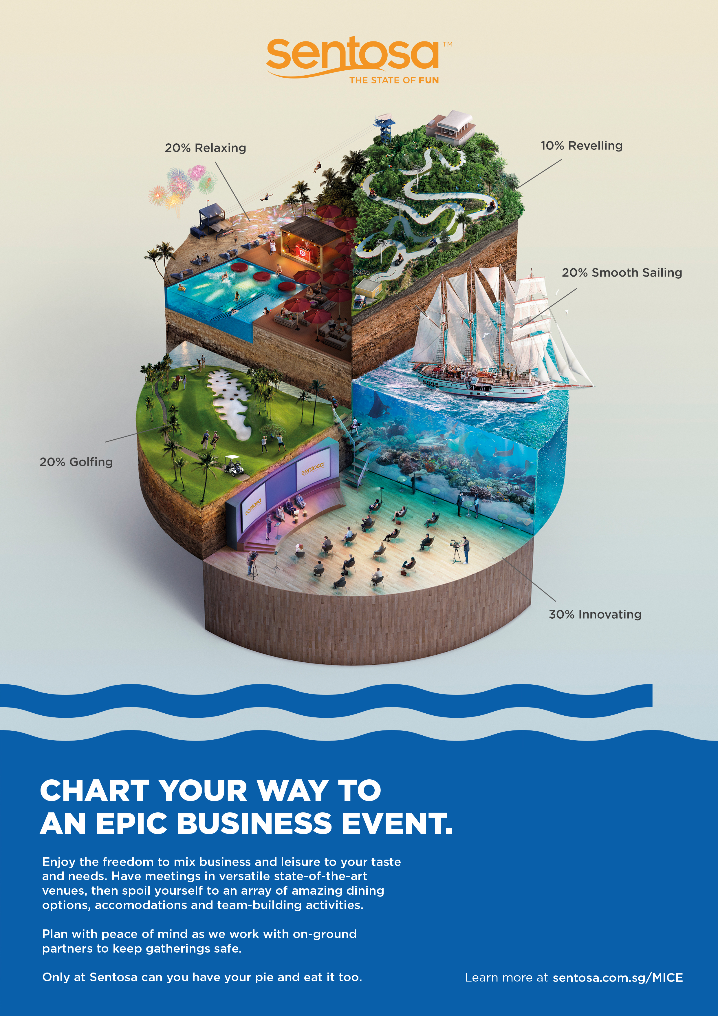 We speak the language the corporate world does, but with the Sentosa charm. It’s a colourful world where circling back could mean doing it in a segway, and taking it offline is a chat in the sparkling sea.