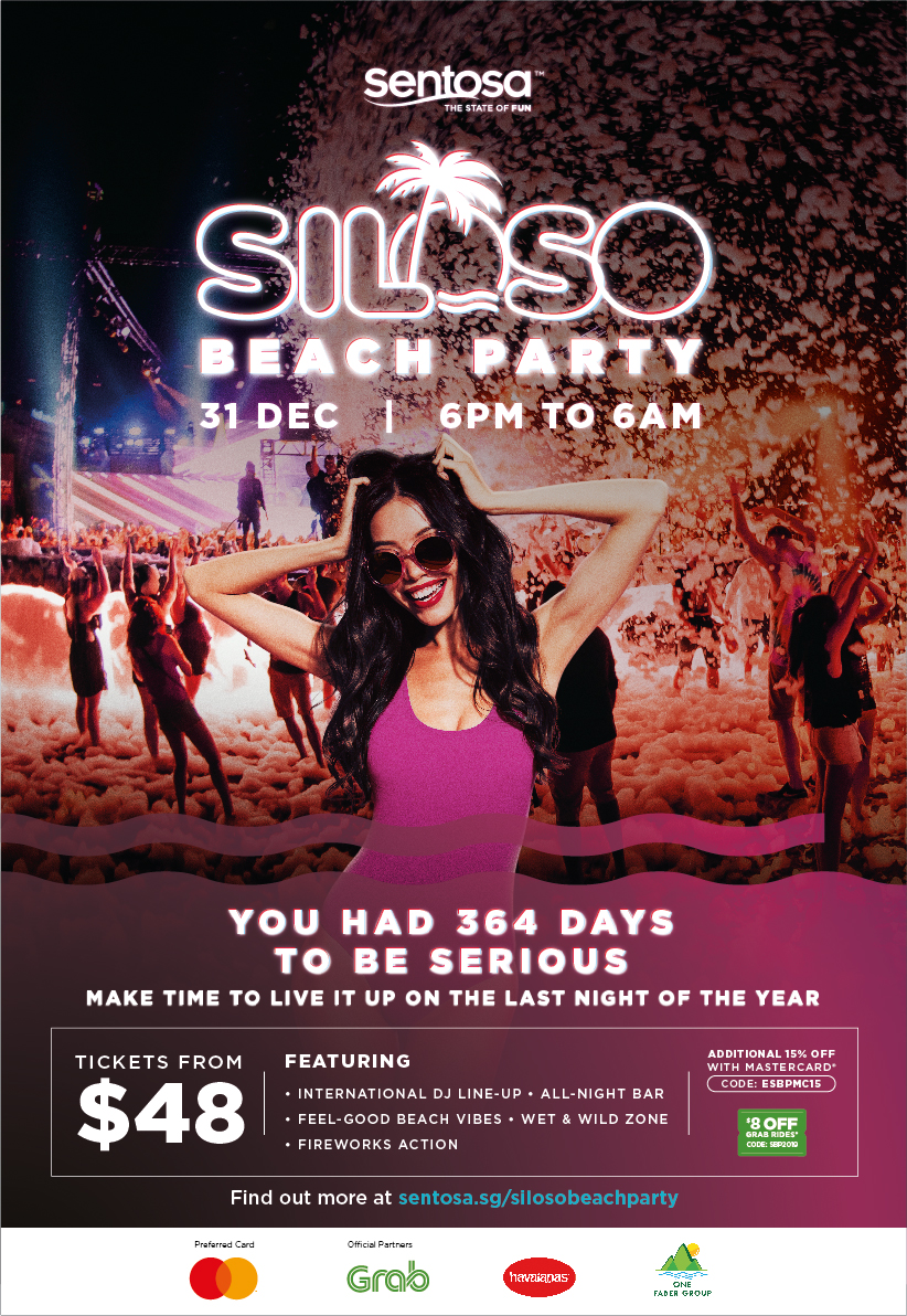 Siloso Beach Party is Sentosa’s iconic year-end revelry in which partygoers close the year by the beach – a rager complete with edm music, fireworks and a foam pool.